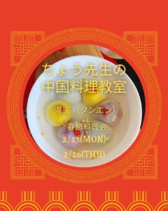 私も大好きな中国菓子のひとつで、とくにちょう先生の湯圓とってもおいしいので、皆さんにぜひご紹介したいです。そして、春節にいただく湯圓だけでなく。春節料理を特別にちょう先生がご用意してくださいます。とても華やかなテーブルになりそうです。