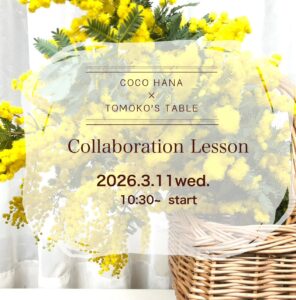 季節ごとの恒例コラボレッスンのご案内です。 COCOHANAの出町恵先生との季節のアレンジとタイ料理ランチ付きです。